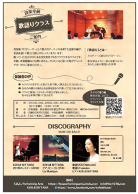 シンガーソングライター&プロデューサーとして数々のアーティストを育てた設楽幸嗣による楽しさ満点のレッスンを受け、歌いたかったけど下手だからとか、声が出ない等の思い込みが外れ、自分の持っている素晴らしさを発見し表現する喜びが増してきました!